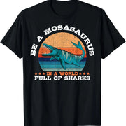Be a Mosasaurus in a World Full of Sharks Shirt 2025 Motivational Dino Graphic Tee Funny Prehistoric Animal T-Shirt for Men - Black / S / United States