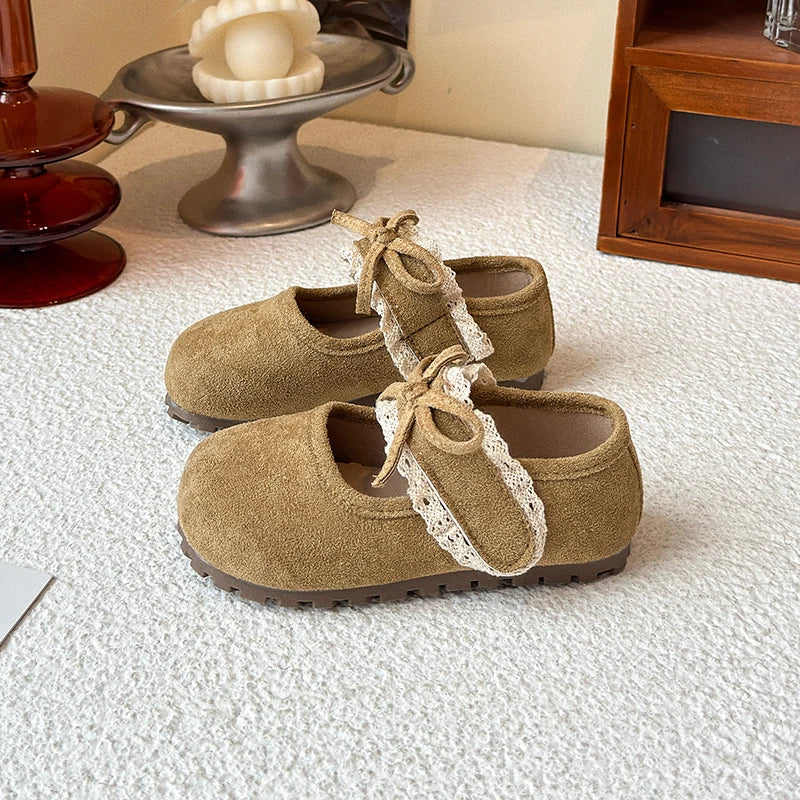 Girls Leather Shoes 1-16 Years Old Khaki Lace Lace Bow Girls Bir Princess Shoes Four Seasons Lightweight Children's ken Shoes