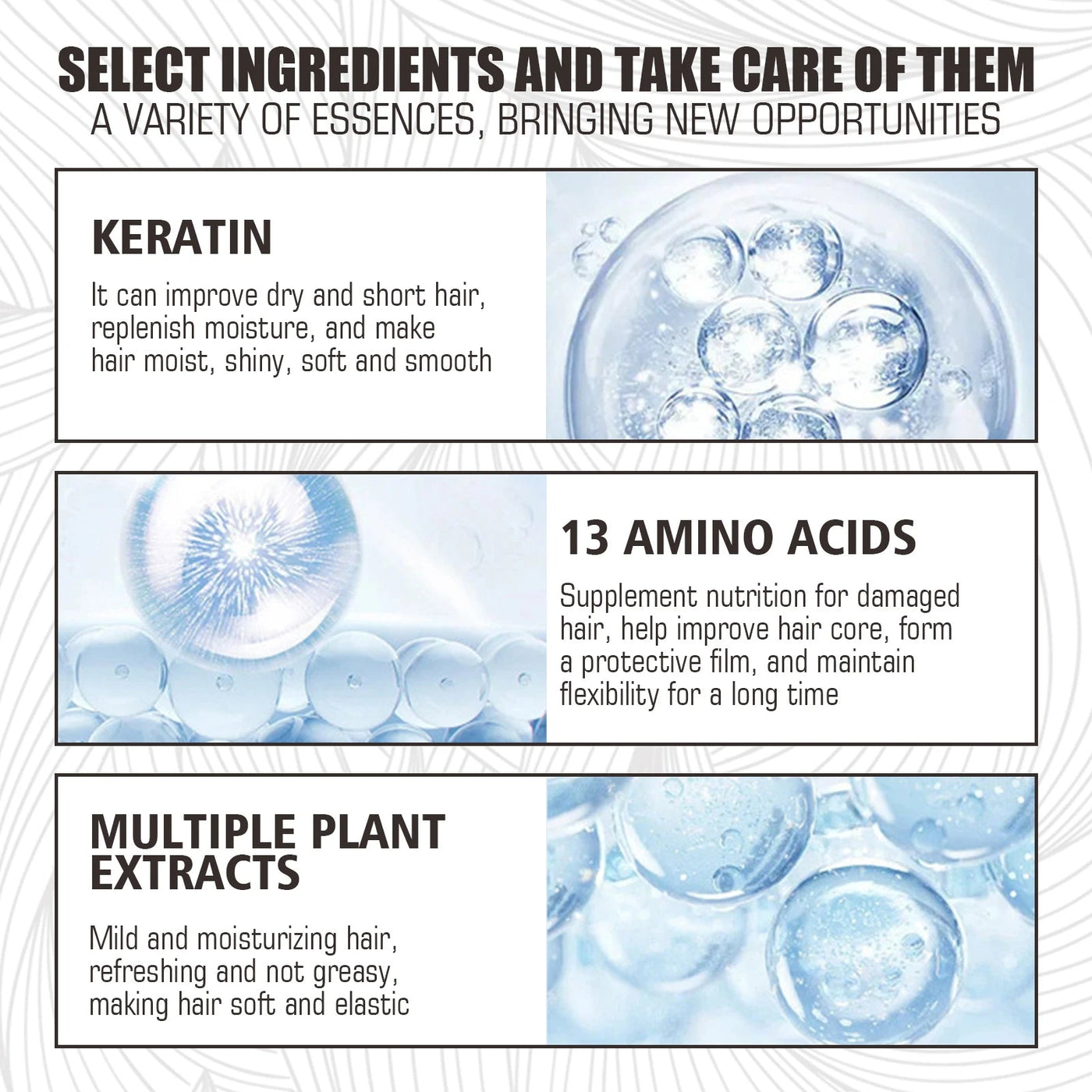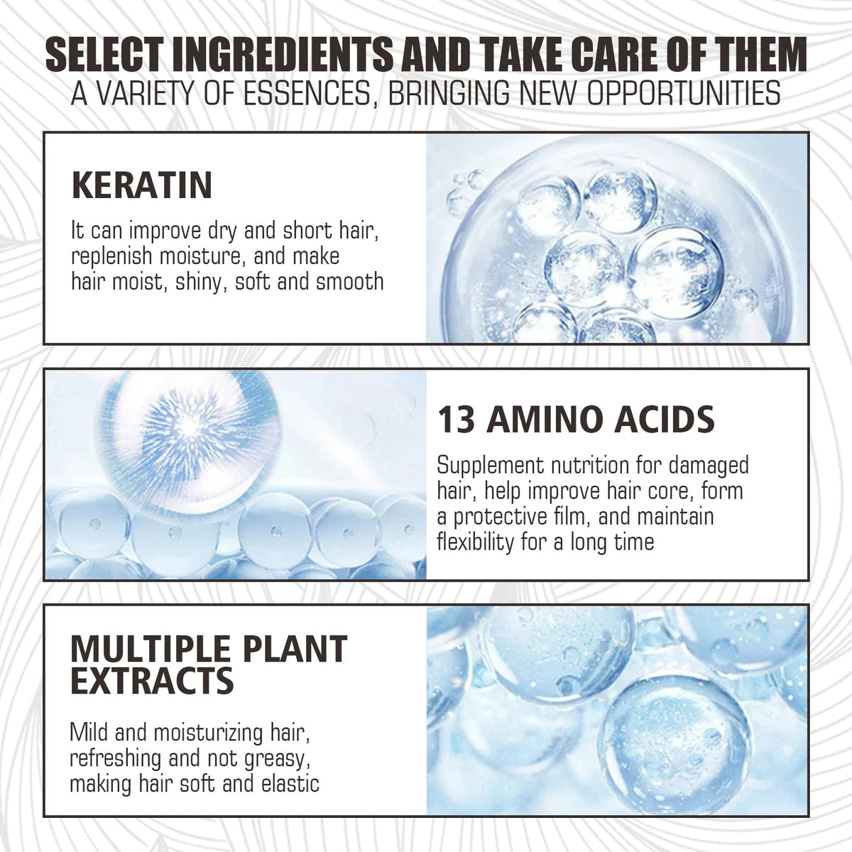 Ingredient: Keratin, 13 amino acids, various plant extracts