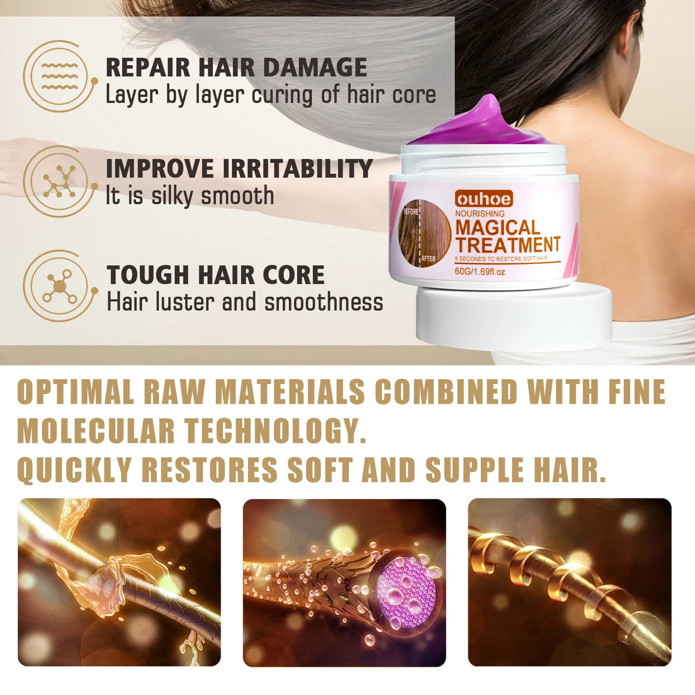 Model Number: Magical Hair Mask 5 Seconds Repair Damage Frizzy Soft Smooth Shiny Hai