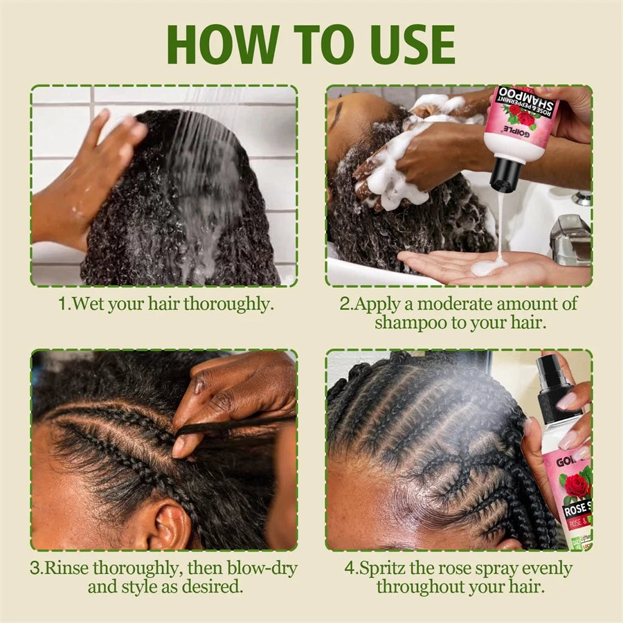 Rose Peppermint Shampoo & Rose Hair Care Spray Moisturizing and Nourishing Conditioning Hair Products Christmas Gifts for Women - 2pcs-Shampoo-Spray
