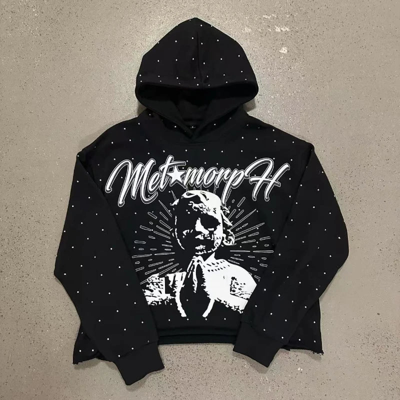 2025 new retro letter printing Y2K street grey sweatshirt hoodie men and women fashion classic hip hop loose personality top
