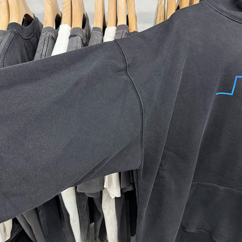 25AW Saint Letter Print Retro Black Hoodies Washed Cotton High Street Casual Pullover Simple Fashion Men