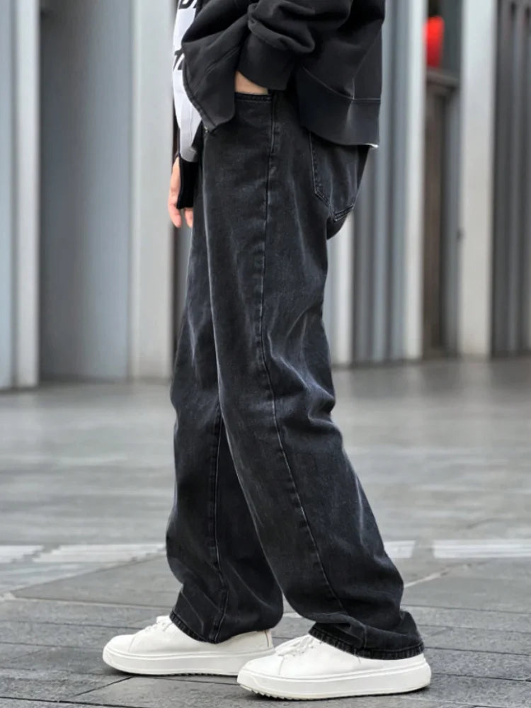 A top choice for autumn and winter transitions! Loose black men's jeans with inherent warmth, comfortable and versatile, suitabl