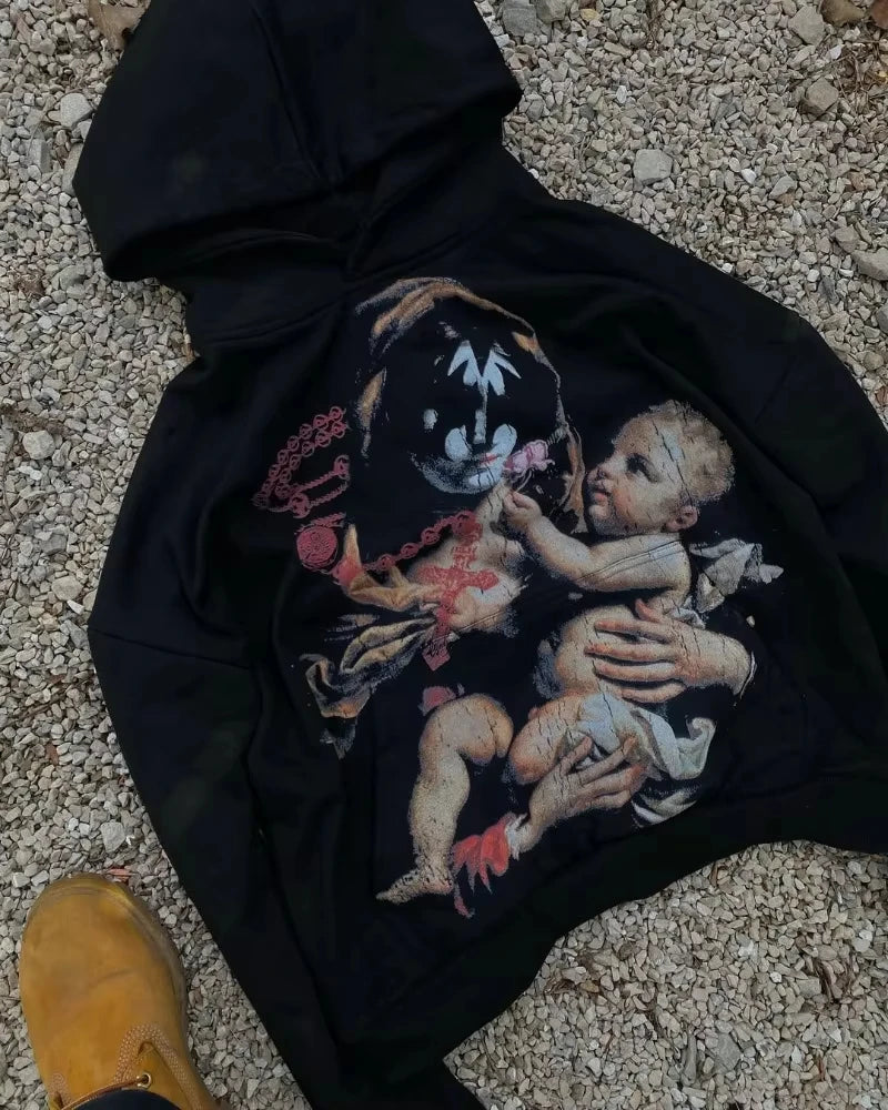 Inform when this item available American Fashion Trend Letter Pattern Printed Oversized Hoodie Men's Y2K Street Hip-hop Harajuku Loose Versatile Pullover