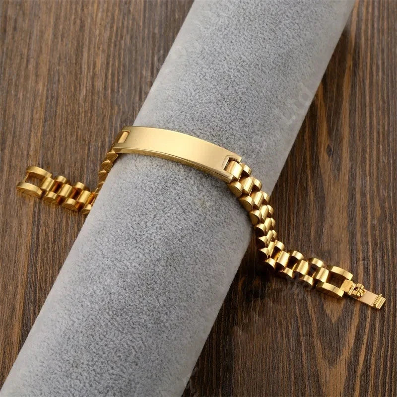 Custom Logo Name Engrave Bracelet Personalized Nameplate Stainless Steel Thick Hand Chain Custom Couple Men Women Jewelry Gift