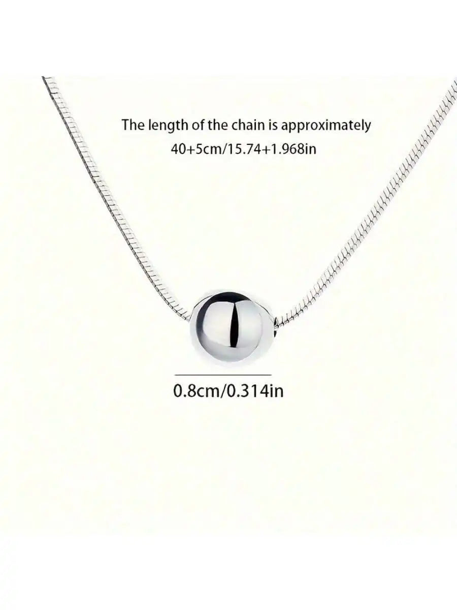 Elegant S925 Silver Boho Necklace – Vintage Sphere Pendant & Snake Chain Gift