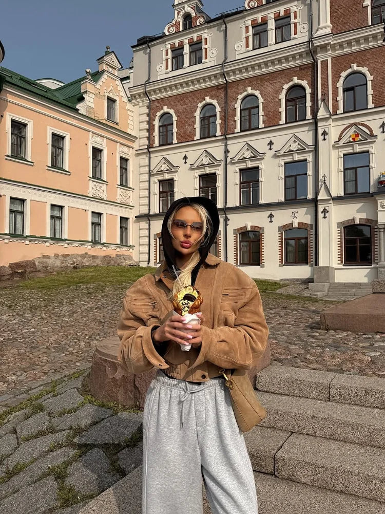 Full Sleeve Zipper Cropped Suede Jacket Women Casual Lapel Pocket Loose Thin Coat 2025 Autumn Lady Highstreet Commute Outwear