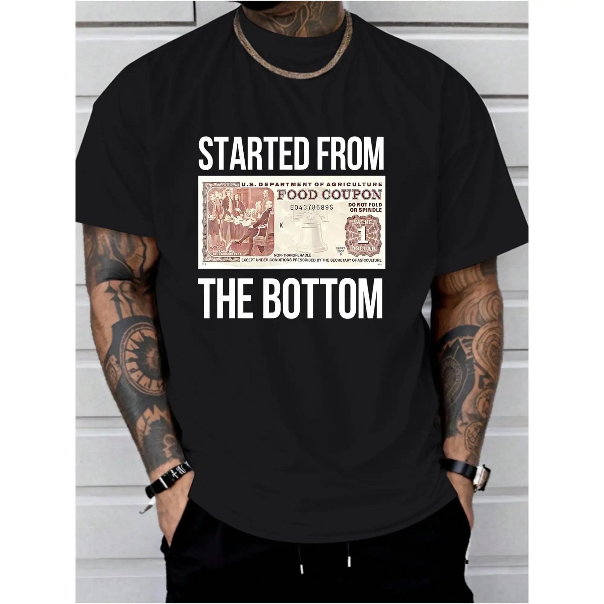 Funny Started from the Bottom T-shirt Humorous Food Coupon Graphic Tee Motivational Hustle Success Top Unisex Men's Gift