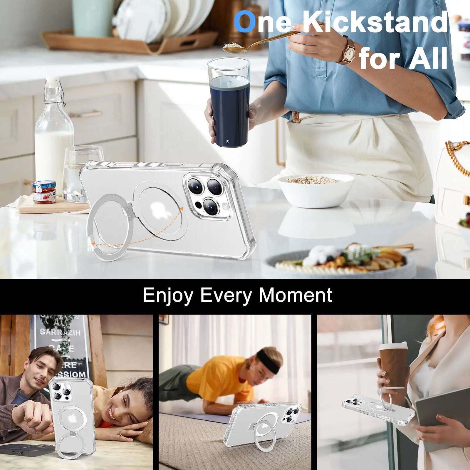 Magnetic Case for iPhone 16 Pro Max Plus with O-Ring Stand Mag-Safe Slim Cover
