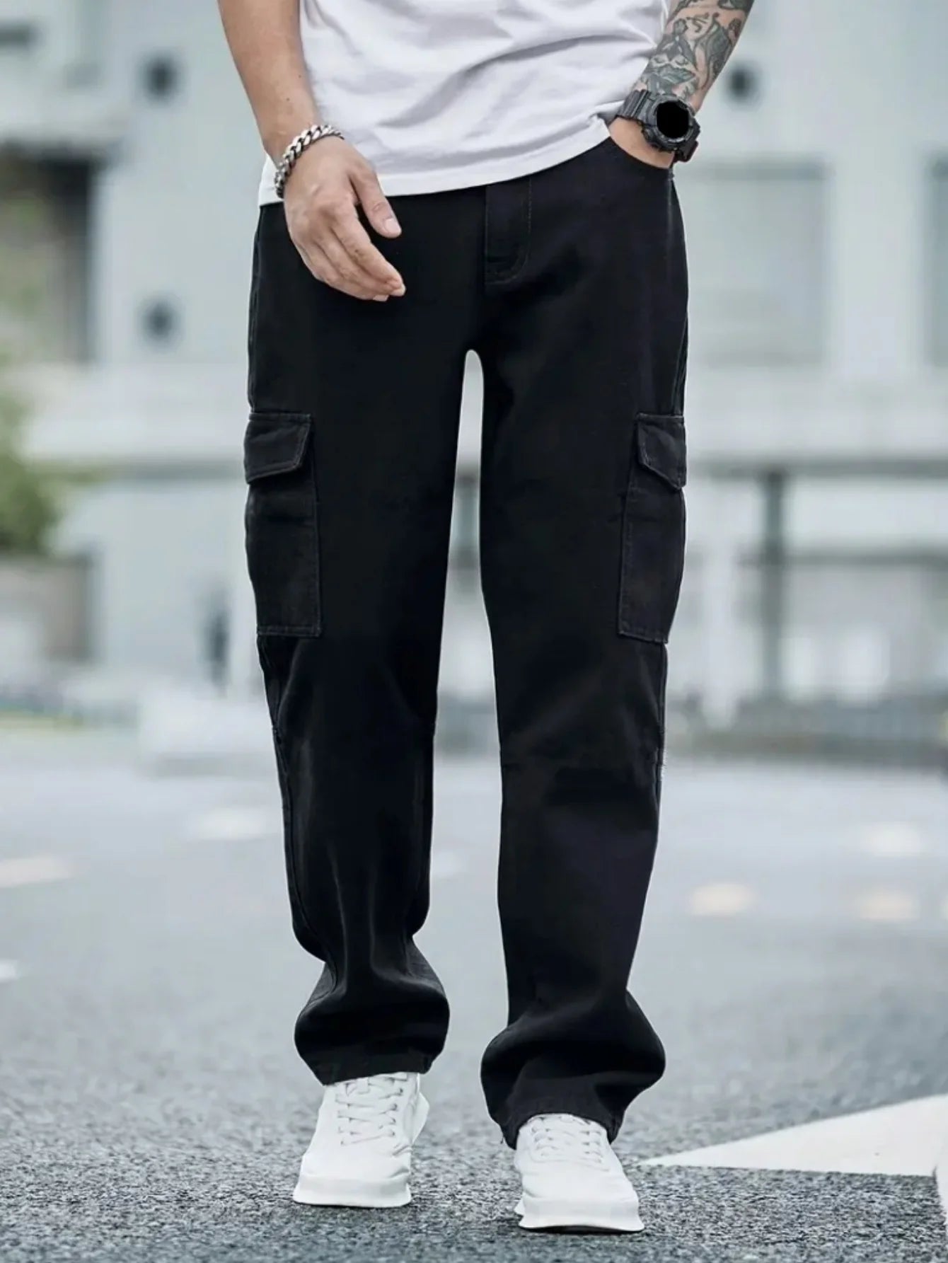 Men’s Cargo Jeans, Multi-Pocket Tactical Denim, Streetwear Edge from Coffee Runs to Concert Nights