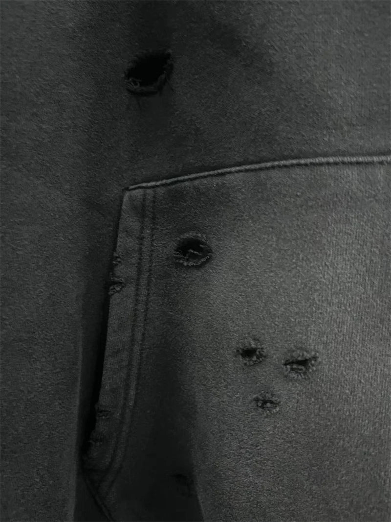 New VTG Saint Letter Logo Print Washed Hoodie Cotton Casual For Men Women Hip Hop Oversize High Street Damaged Hole Streetwear