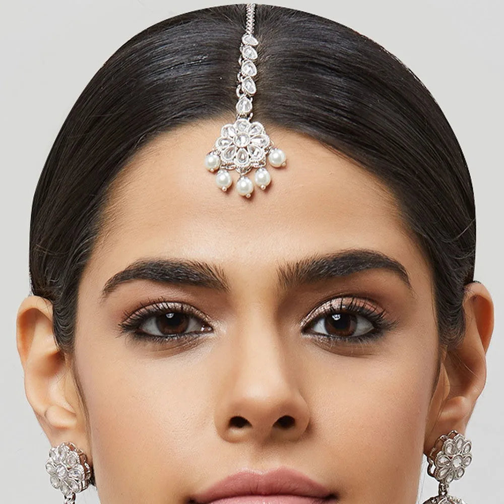 Stonefans Pearl Forehead Chain – Vintage Indian Headband with Crystal Pendant