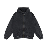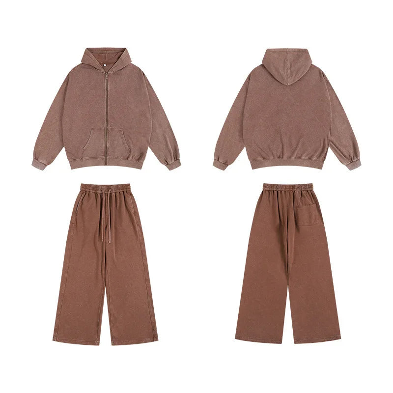 Washed and aged sweatshirt, loose hoodie for young couples, round-neck jacket, zip-up sweatshirt, men's suit set