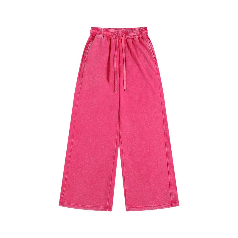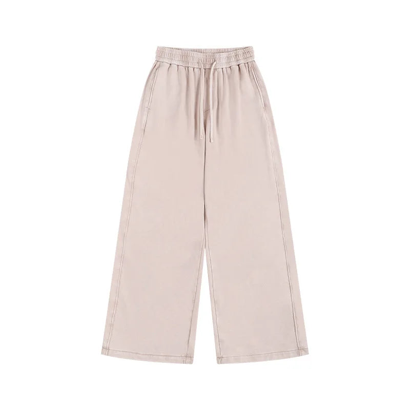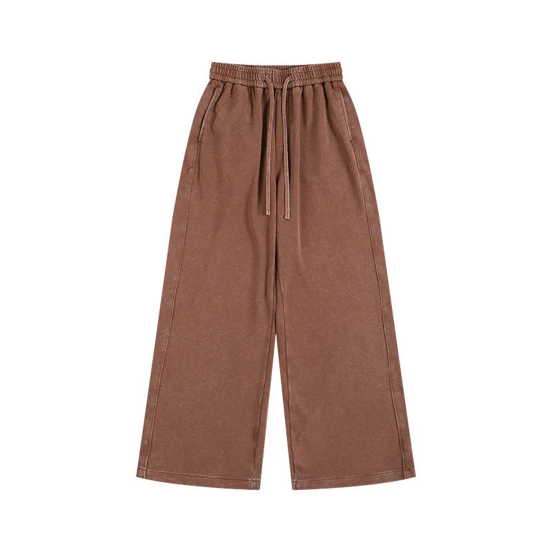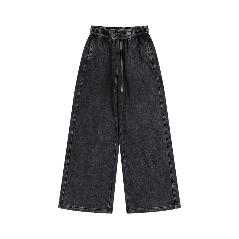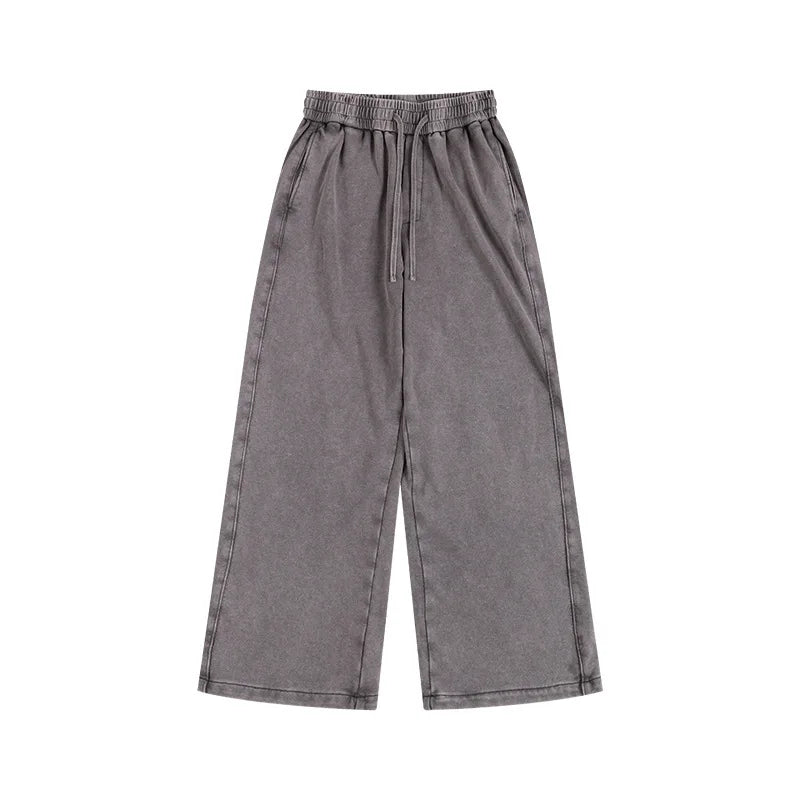 Washed and aged sweatshirt, loose hoodie for young couples, round-neck jacket, zip-up sweatshirt, men's suit set - Gray Trousers / M / CHINA