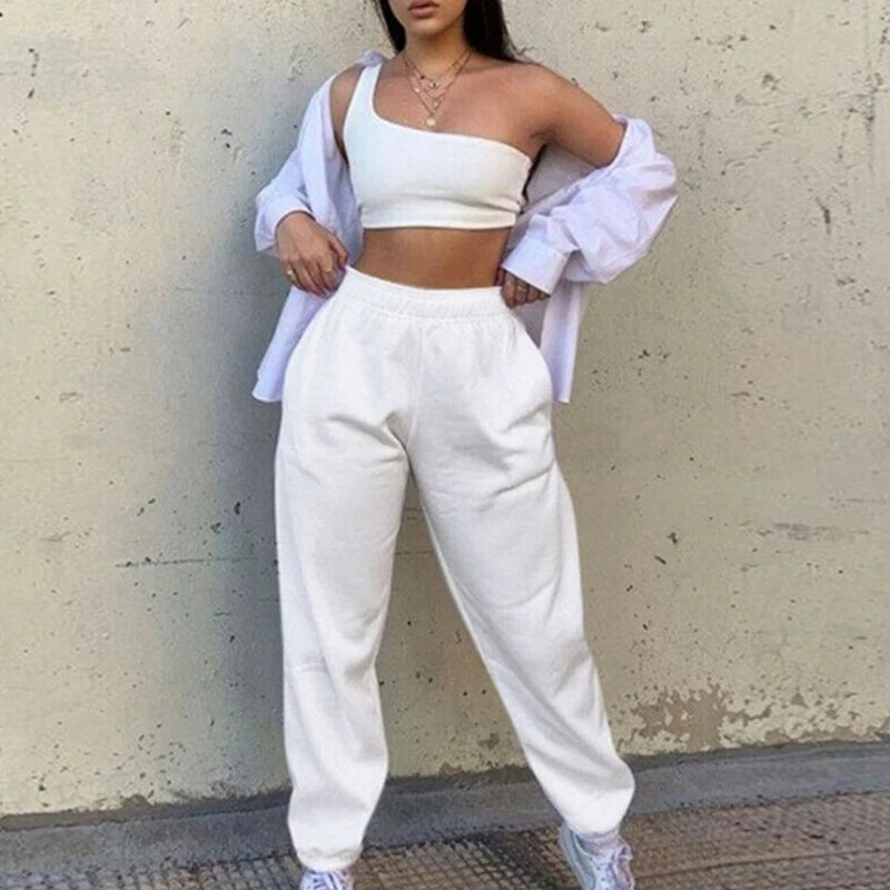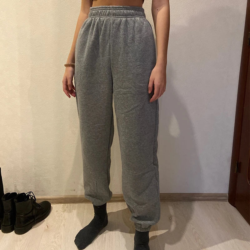 Women High Waist Casual Sweatpants Loose Elastic Waist Sports Pants Solid Sweatpants Baggy Ankle-length Trousers Black Gray