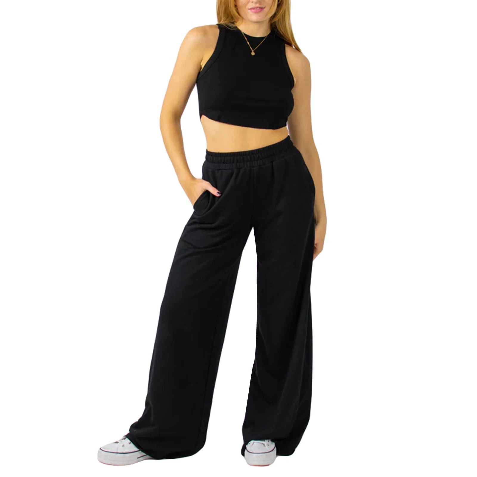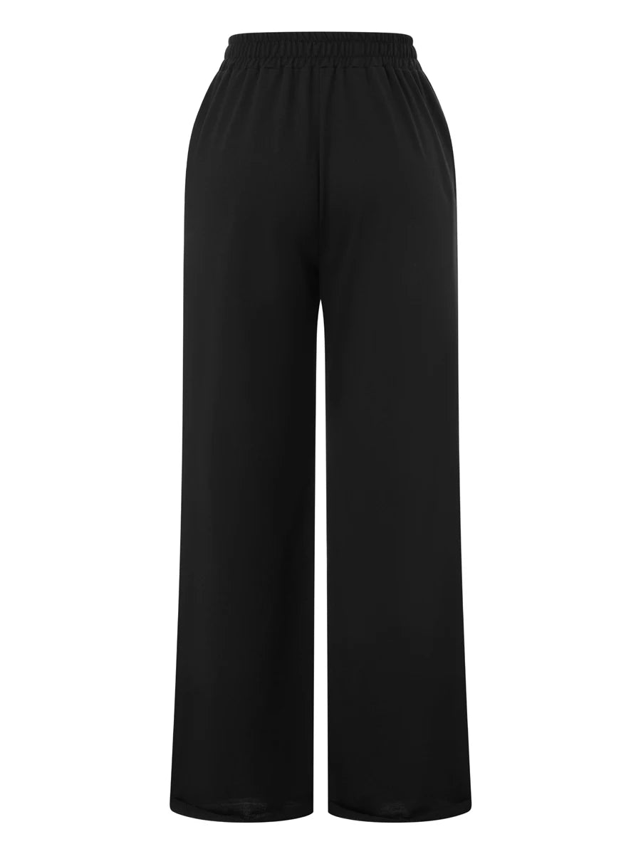 Women s High Waist Wide-Leg Pants in Solid Color Elastic Waistband Loose Fit Casual Fall Sweatpants with Straight Bottoms