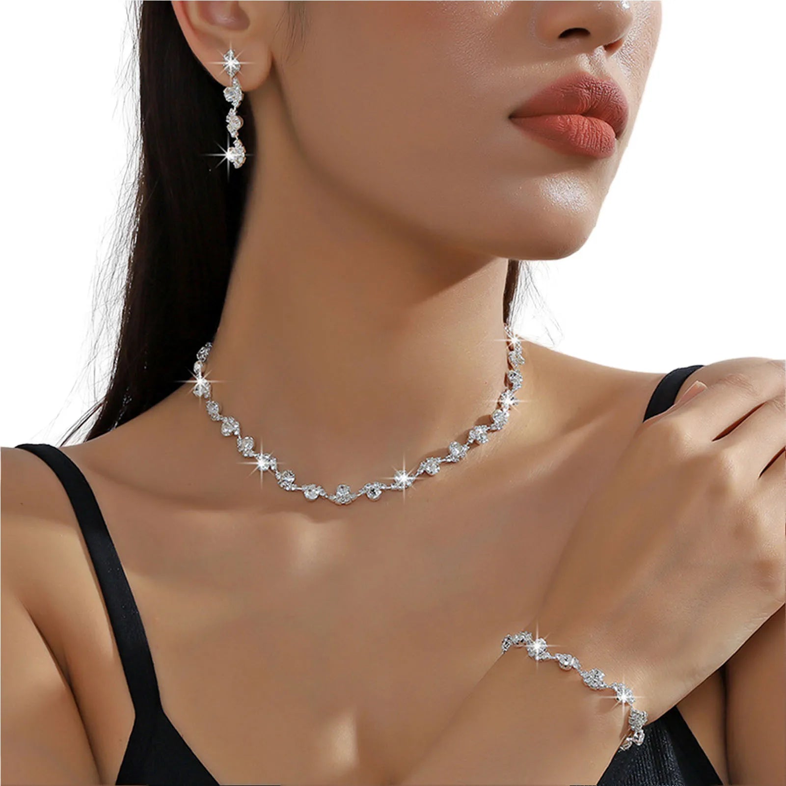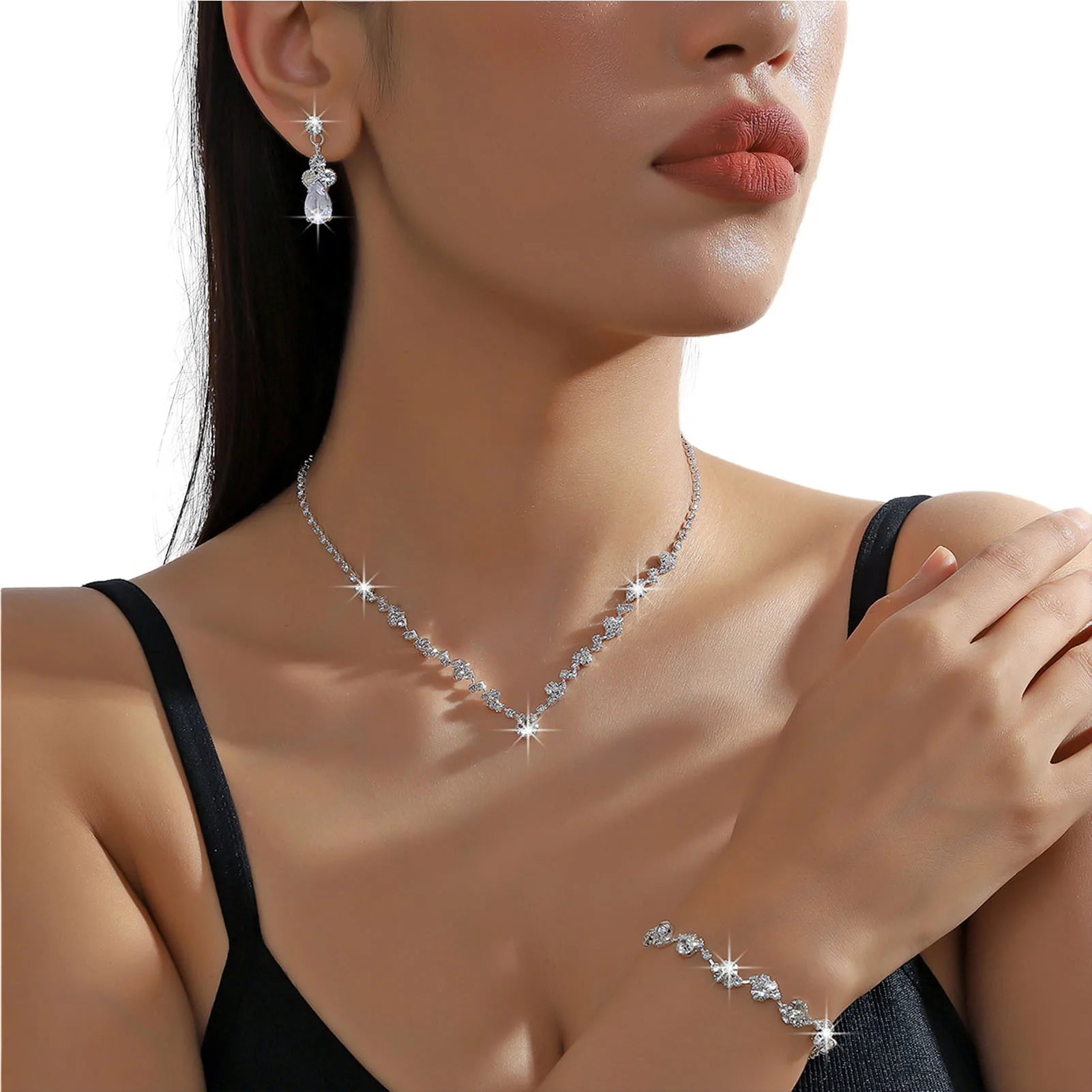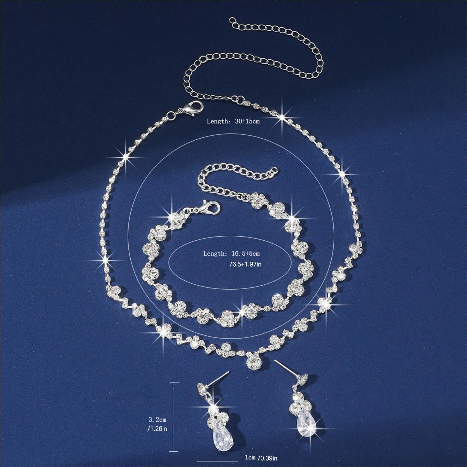Women's Hanging Necklace Earrings Bracelet Set Sparkling Full Rhinestones Ornaments Set for Bridesmaid Wedding Masquerade MIAO