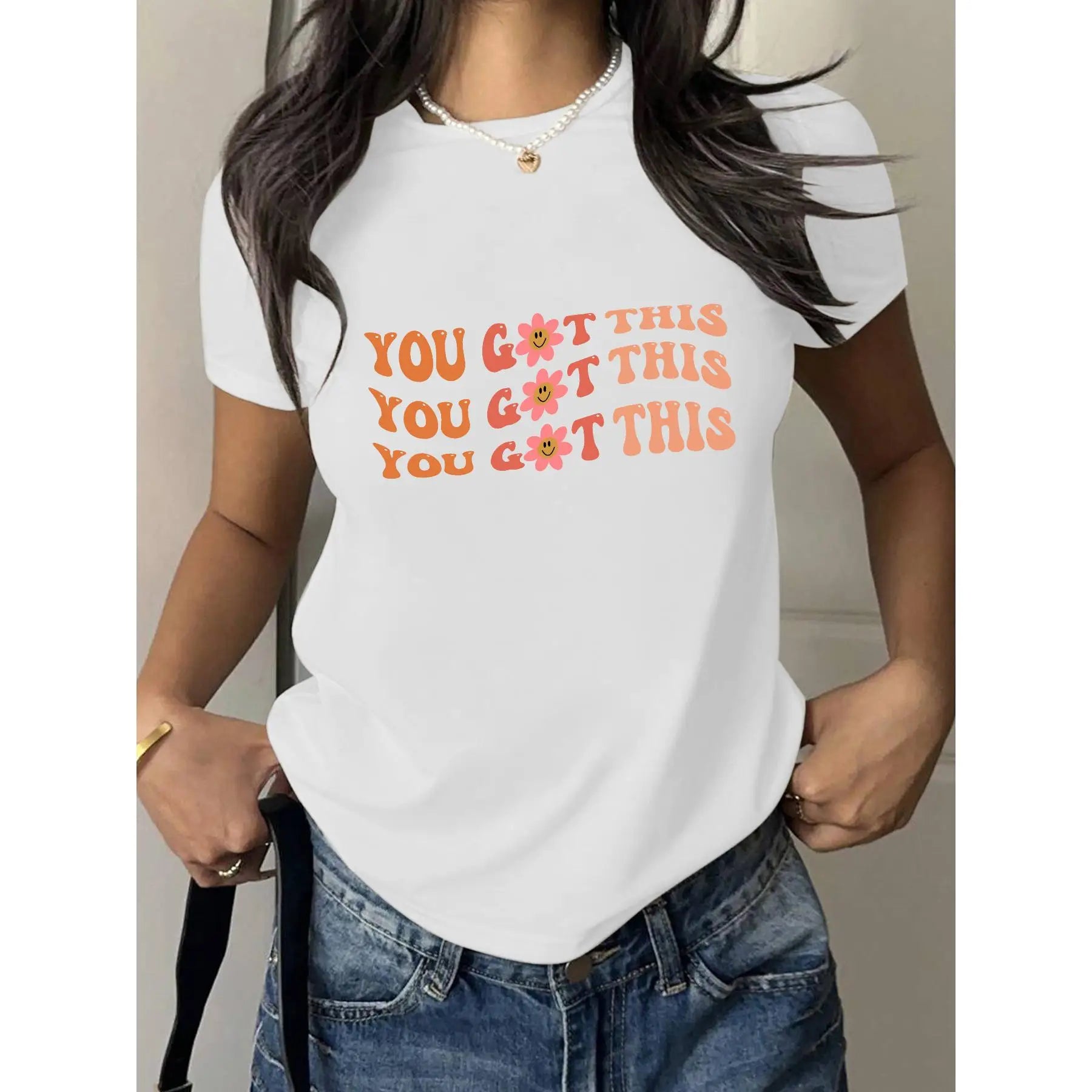 Women's Inspirational "You Got This" Flower Print T-shirt Short Sleeve Loose Casual Motivational Top Positive Boho Style