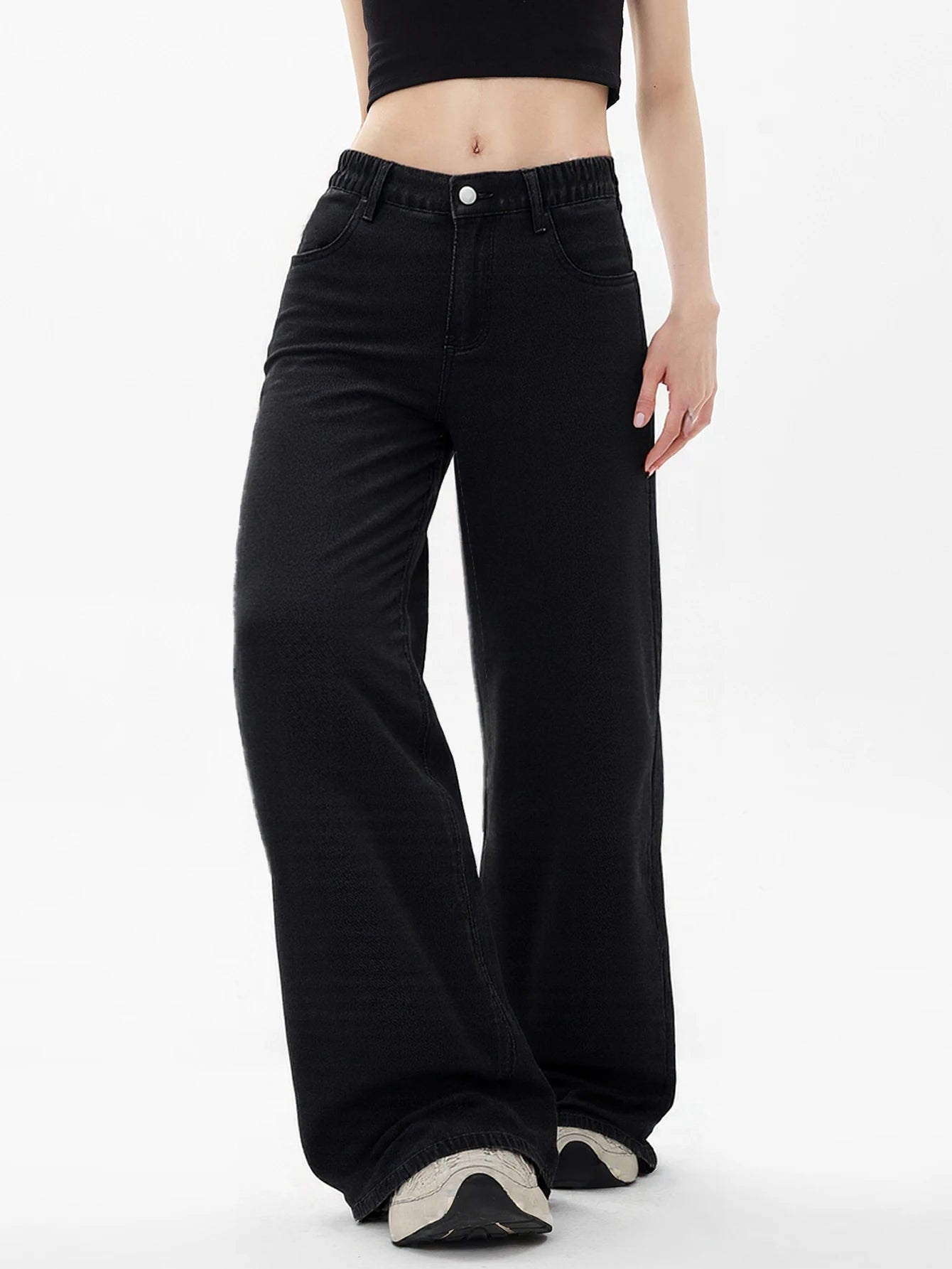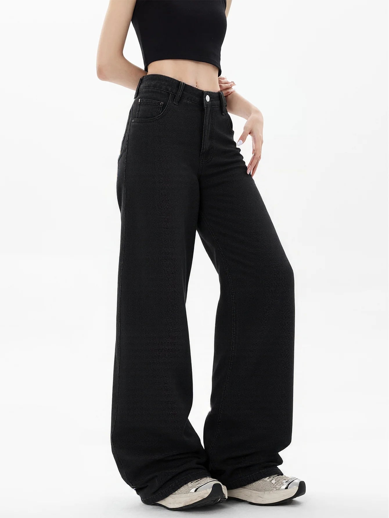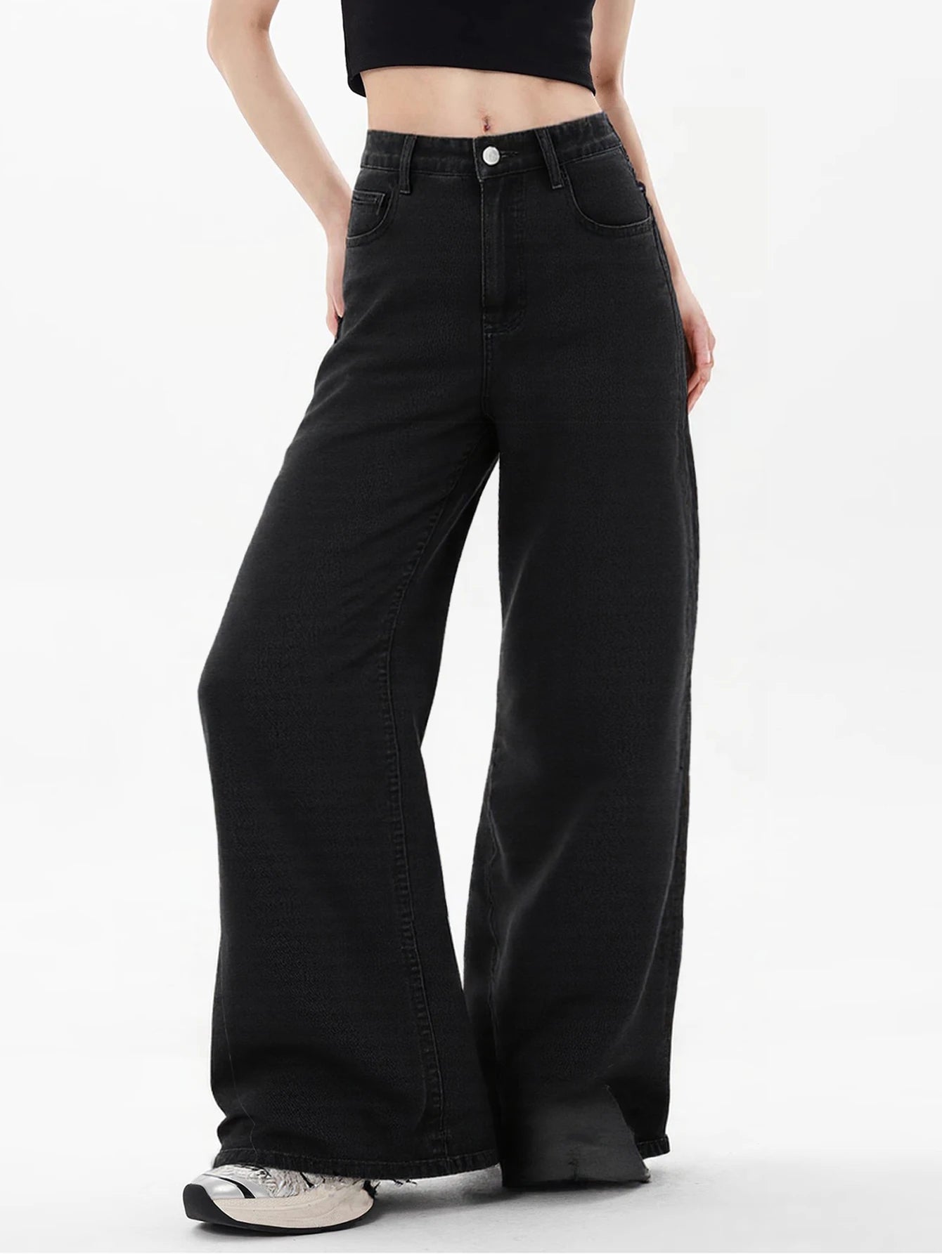 Women's Loose-Fit Black Slimming Washed Denim Pants – Stylish Straight-Leg Wide-Baggy Jeans for Girls