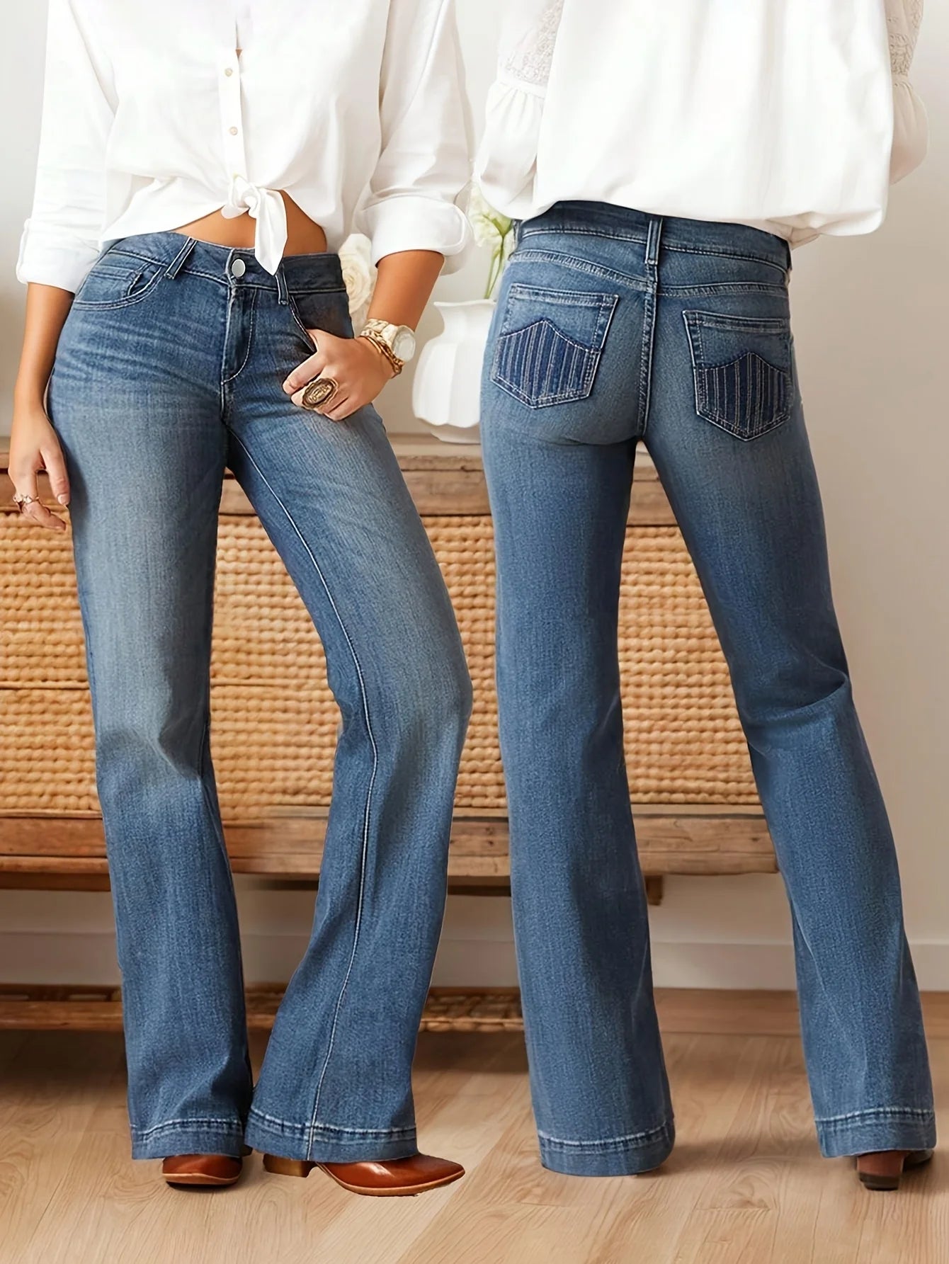 Women's Vintage Bootcut Jeans Mid Rise Stretch Slim Embroidered Wide Leg Denim Pants Western Cowgirl Boot Jeans
