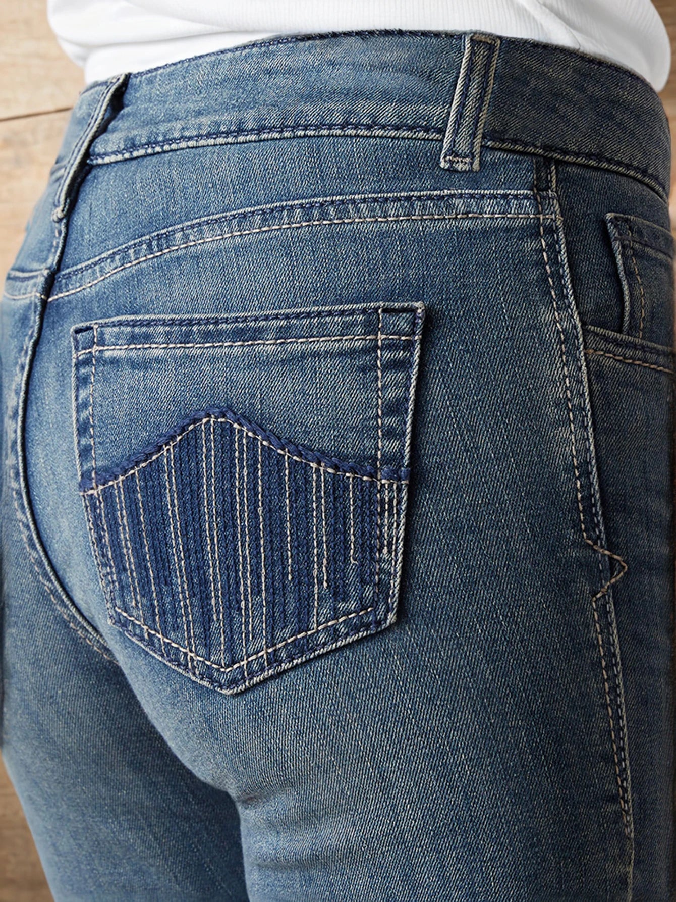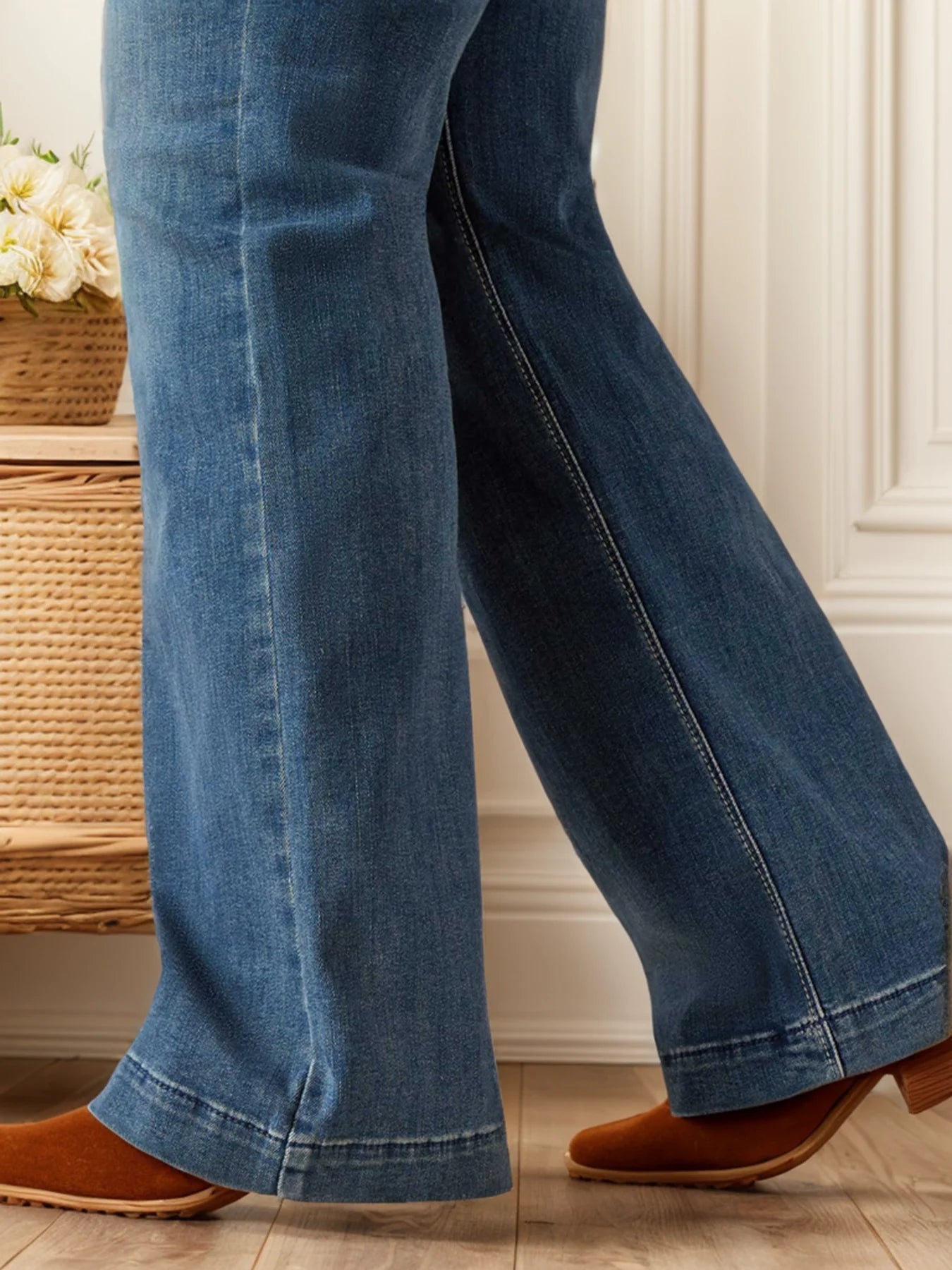 Women's Vintage Jeans Mid Rise Stretch Slim Embroidered Wide Leg Denim Pants Western Cowgirl Boot Jeans