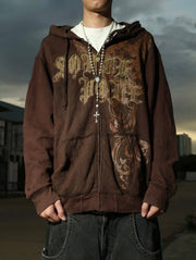 Y2k Zipper Hoodie Letter Pattern Gothic Punk Sportswear Brown Hoodie Sportswear Hoodie Long Sleeve Super Large Hoodie Jacket - 6 / M