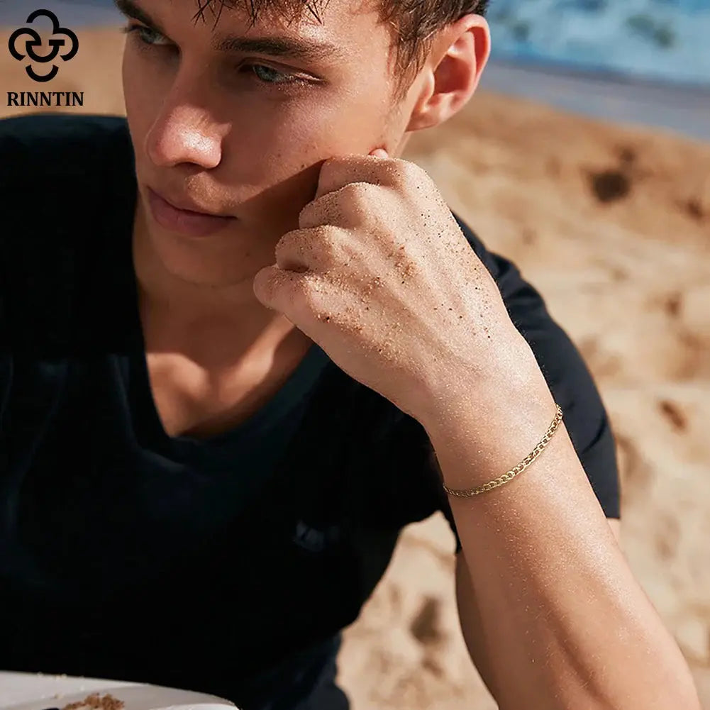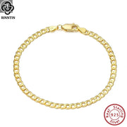 Rinntin 18K guldöverdrag på 925 sterlingsilver 3 mm italiensk kubansk kedjearmband för kvinnor män trendigt silverarmband smycke SB123
